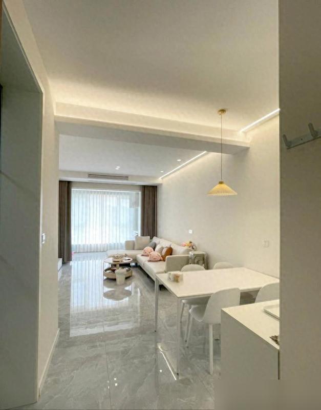 一眼就被那个阳台设计深深吸引,打通之后客厅瞬间变得格外敞亮,摆上一个小茶几,既能喝茶又能欣赏风景,就算是风雨天也依旧清爽宜人。